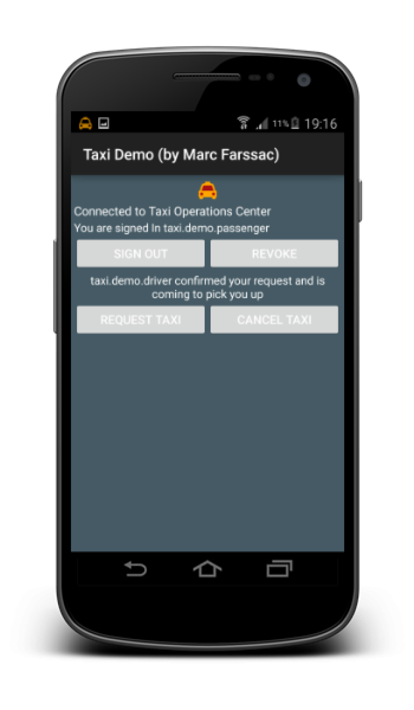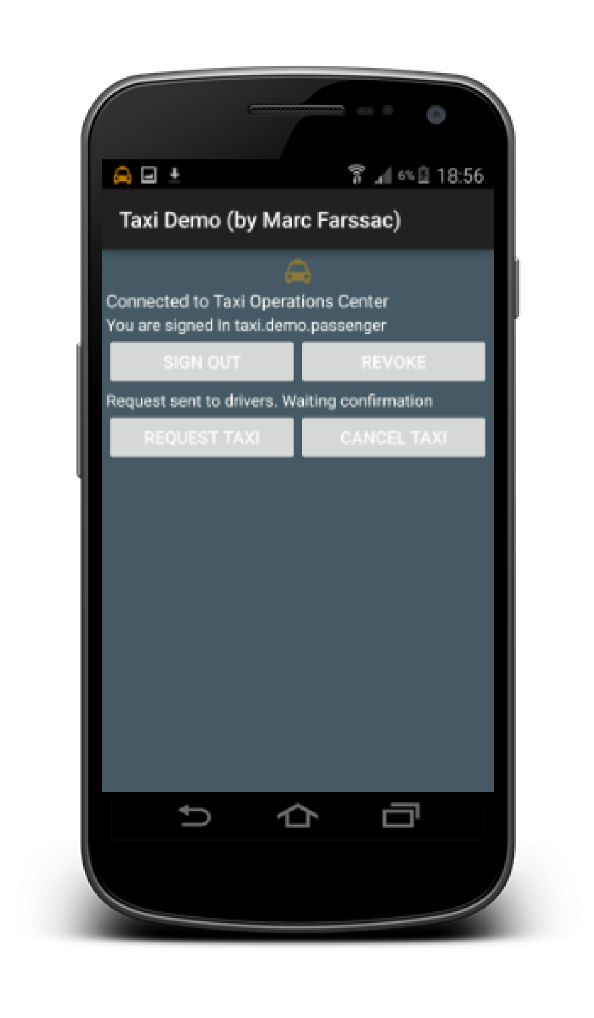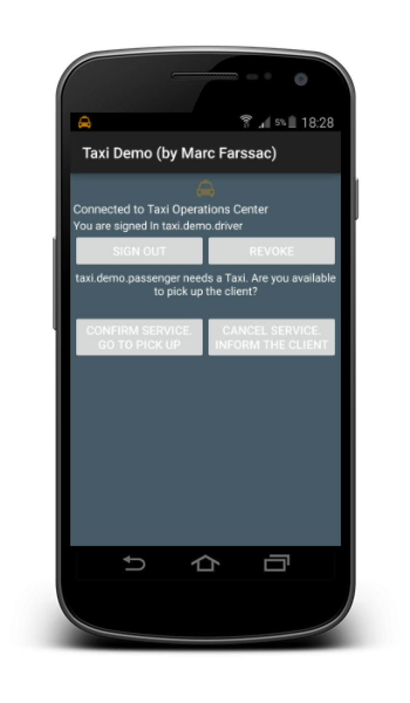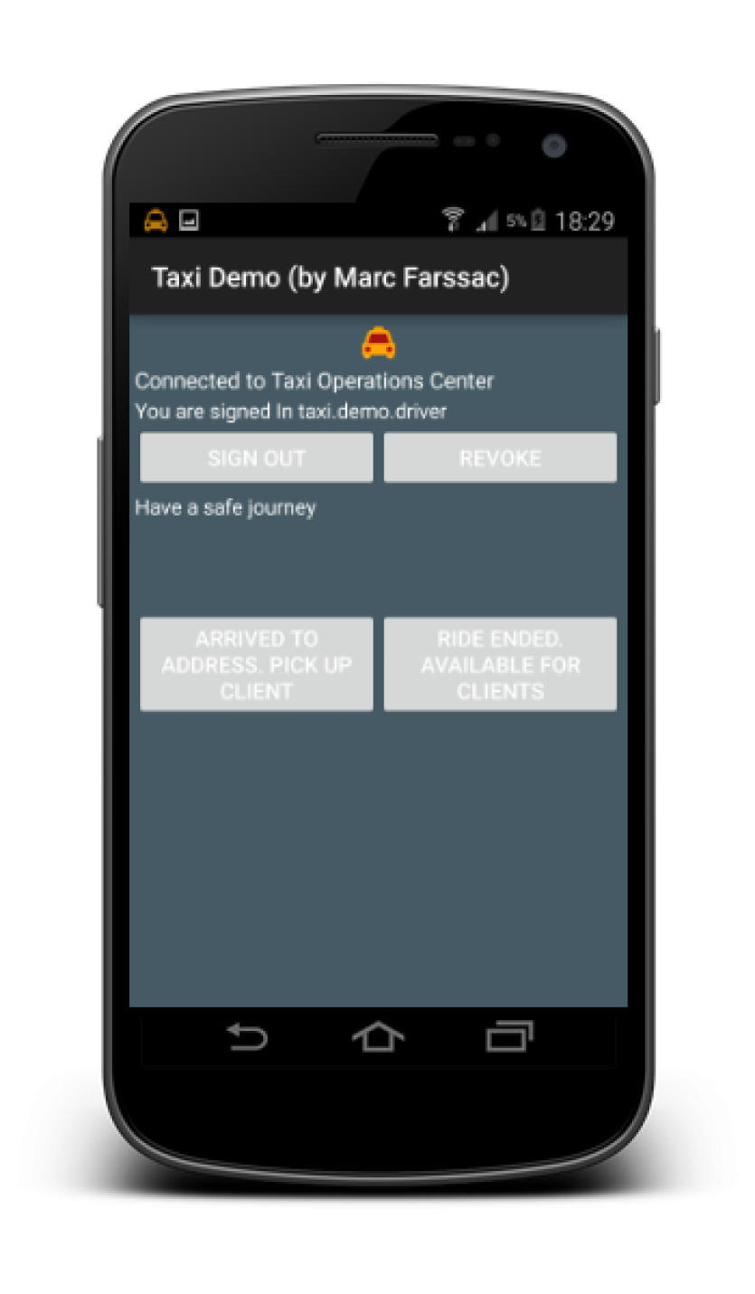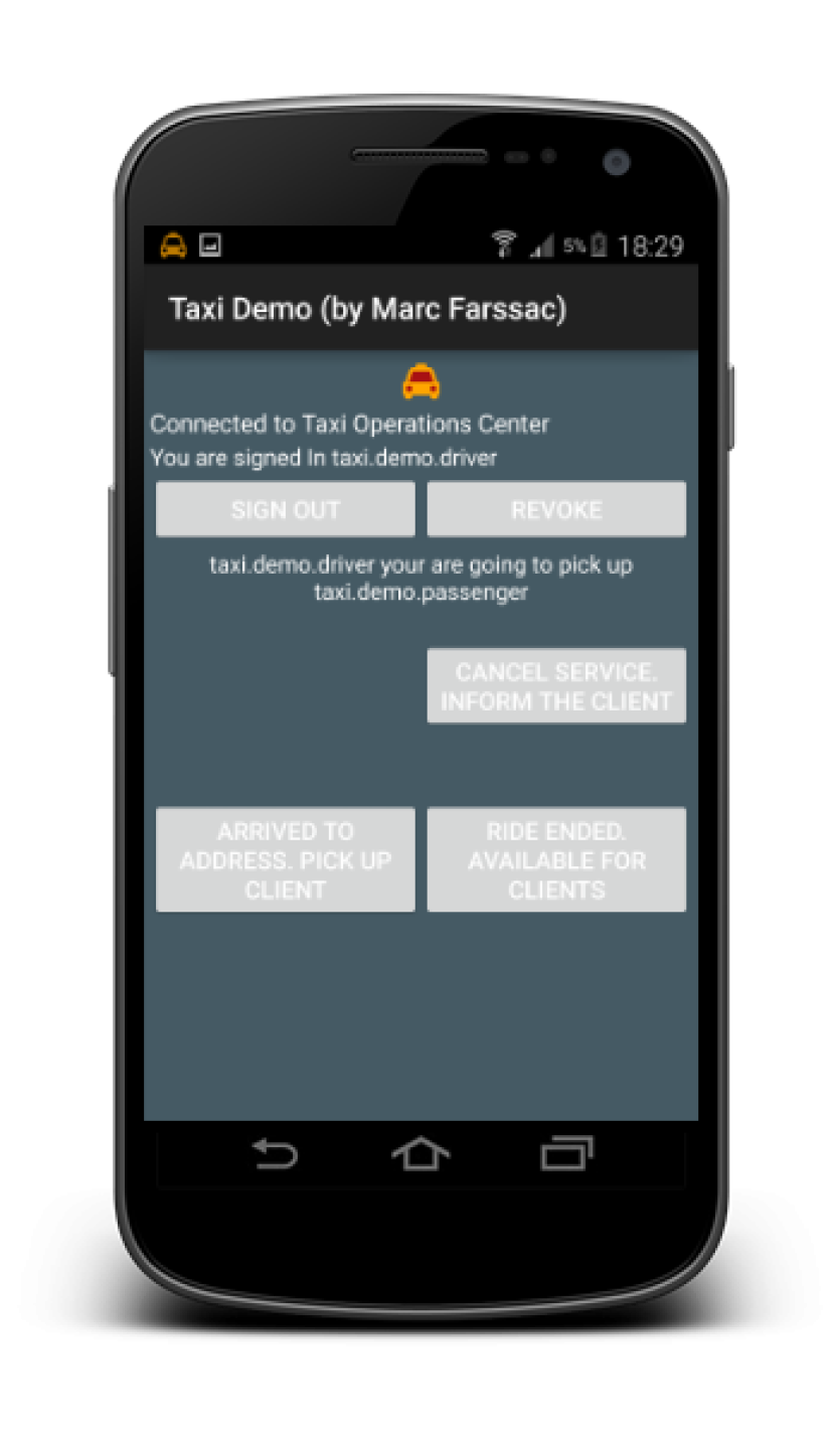 My UpWork customer requested the core of a communications system among two different user roles within one App. The goal was to communicate passengers and drivers. This was achieved thanks to the XMPP protocol, a Google Cloud Connections Server and an App Engine Java Application to register users and drivers.